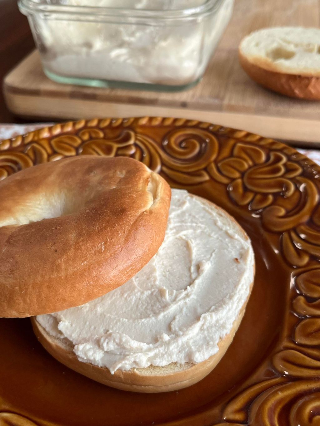 I made an amazing discovery: vegan cream cheese that tastes just like dairy cream cheese. Now, I am not typically talented in vegan cheesemaking, but I chanced upon this recipe as I tried to follow a recipe for vegan ricotta, and I couldn’t believe how much it tasted just like cream cheese! Not just that, but it’s smooth and spreads like the creamy cream cheese we know. It’s inspired me to try my hand at vegan cheesemaking, so look out for more recipes in the future.